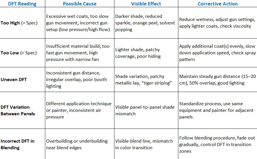 Troubleshooting Chart – DFT Issues in Metallic Automotive Paints